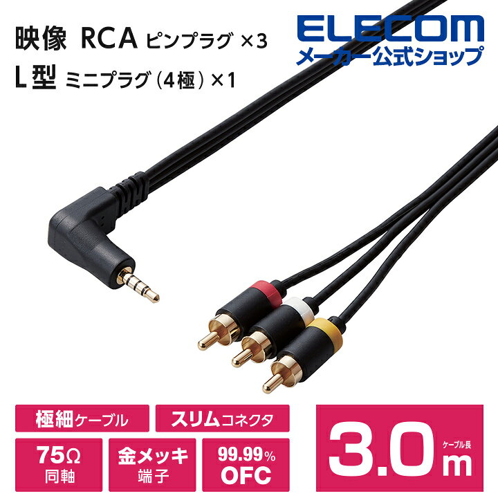 エレコム AV入力 用 ミニジャック L型ミニプラグ 4極 - RCAピンプラグ ケーブル 映像ケーブル L型 ミニピンプラグ 3.0m ブラック ELECOM DH-MLWRY30BK