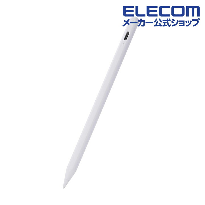 エレコム iPad用 アクティブタッチペン 充電式 パームリジェクション対応 傾き検知 磁気吸着 USB-C充電 急速充電 ホワイト ELECOM P-TPACSTAP09WWH