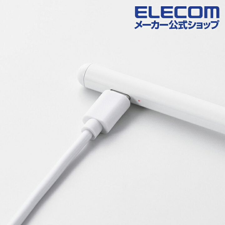 ■隙間時間の充電ですぐに使える!約20分でフル充電可能な急速充電機能を搭載した、iPad用アクティブタッチペンです。約1.6mmのペン先で細かい作業、メモや絵を描くのにおすすめ。ペンの傾き具合で線の太さを変えられる機能や、誤動作を防止するパームリジェクションにも対応しています。■純正のApple Pencilに近い描き心地の、iPad用アクティブタッチペンです。 ■約20分でフル充電可能な急速充電機能を搭載。電池が切れても充電してからすぐに使用できます。 ■約1.6mmのペン先で細かい作業、メモや絵を描くのにおすすめです。 ■ペン先は導電性に優れたポリアセタール樹脂(POM)を採用し、滑らかな描き心地で画面を傷つけにくいです。 ■ペンの傾きを検知する機能で、傾き具合によって線の太さを変えられます。 ■手のひらが画面に接触した状態でも、ペンを認識して誤動作を防止するパームリジェクション機能を搭載しています。 ■タッチペンの側面にはマグネット面があり、iPadに吸着できるので紛失を防ぎます。 ■※iPadに装着するケースによってはiPad本体のマグネット部分が隠れてしまい、本製品を付けられない場合があります。 ■マグネット面がフラットになっていて、テーブルや床に置いても転がりにくい形状です。 ■USB Type-C(TM)ケーブルで充電が可能で、約5時間の連続使用が可能です。 ■※ご使用状態によっては、目安の時間よりも早く充電が必要になる場合があります。 ■4段階に光るLEDランプでバッテリーの残量が分かります。 ■ペアリングが不要で、電源をオンにするだけですぐに使用できます。 ■操作しない状態が5分間続くとオートオフ機能が働き、電源がオフになるので消し忘れを防ぎます。 ■指先でのタッチ操作と違い、画面を汚す心配が少なく操作できます。 ■タッチ操作はもちろん、スライド・スワイプ操作も快適に行えます。 ■※画面保護フィルムをご使用の際は、タッチペンの跡が残ることがあります。 ■※画面保護フィルムをご使用の際は、フィルムの種類によっては、操作時にこすれ音が生じたり、ペンの反応が悪くなることがあります。 ■交換用のペン先を2個と、USB Type-Cケーブルを付属しています。 ■※本製品にACアダプター(AC充電器など)は付属していないため、出力5V/0.5A以上のUSB出力アダプターを別途ご用意ください。 ■ペン先は、Apple Pencil純正ペン先(第1・第2世代・USB-C・Apple Pencil Pro)との交換が可能です。 ■※USB Type-C and USB-C are trademarks of USB Implementers Forum ■自社環境認定基準を1つ以上満たし、『THINK ECOLOGY』マークを表示した製品です。 ■廃棄物削減に取り組み、製品に同梱する取扱説明書等をペーパーレス化した製品です。■対応機種:2018年以降のiPadに対応(一部機種を除く) ※iOS 12.2以降に更新する必要があります。※2018年以前発売のiPadには対応しません。※2025年5月現在。■外形寸法:全長:約166mm、直径:約8.8mm、ペン先:約1.6mm■材質:ペン先:ポリアセタール樹脂(POM)、本体:アルミニウム・マグネット■カラー:ホワイト■質量:約13g■電池:リチウムイオン電池■使用時間:約5時間 ※ご使用状態によっては、目安の時間よりも早く充電が必要になる場合があります。■充電時間:約20分 ※使用状況や環境により変化します。■保証期間:1年間■付属品:USB Type-C(TM) - USB-Type-Cケーブル、交換用ペン先2個■筆圧感知:×■ワイヤレス充電:×■傾き検知:○■パームリジェクション:○■備考:※特定のアプリやソフトにおいて、専用タッチペンのみでの描写設定をしている場合は使用できないことがあります。エレコムダイレクトショップ