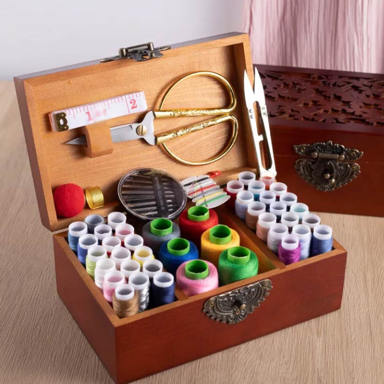 木製 ソーイングボックス 花 彫り 裁縫箱 裁縫道具入れ 上品 和風 大容量 裁縫ケース ウッド収納ボックス 針箱 ソーイングBOX 手芸 刺繍 小物入れ お道具箱 高級感 小物ケース 収納ケース ブラウン こげ茶 母の日 誕生日 プレゼント ギフト