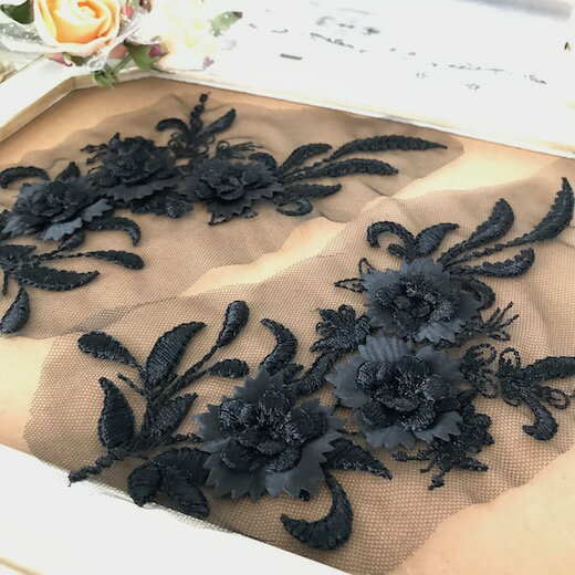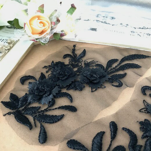 モチーフ 花 衣装 チュールモチーフ バラ バトン レオタード アップリケ レースモチーフ 黒 新体操 衣装モチーフ レオタードモチーフ バトンモチーフ バレエ衣装 服飾 材料 装飾 ブラック