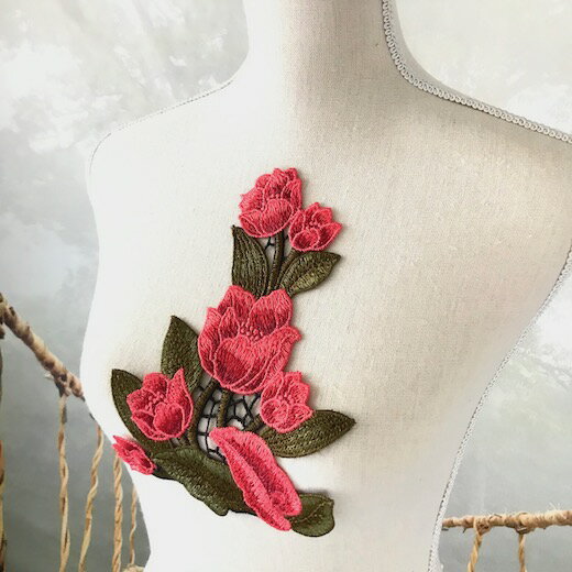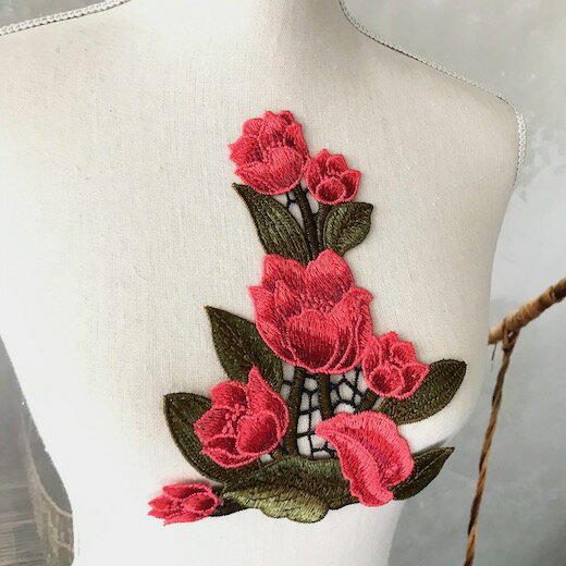 レッドカラーのバラのモチーフになります。 ワンピース、新体操、社交ダンス、バトントワリング、 レオタード、ベリーダンス、フィギュアスケート、 バレエ衣装、ドレス、服飾、ステージ衣装、舞台衣装、 ハンドメイド材料などにお使いいただけます。 サイズ:H21cm W14cm カラー:レッド・グリーン