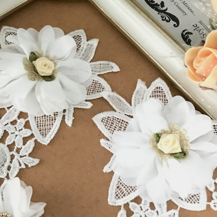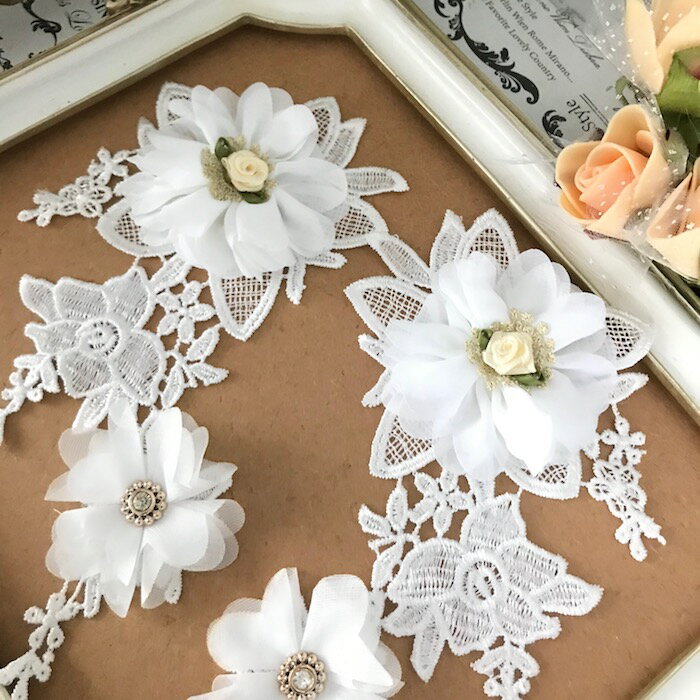 レースモチーフ モチーフ ホワイト 白 お花 ビーズ付き 装飾 服飾 レオタード バトンモチーフ 新体操 ベリーダンス 社交ダンス 衣装 バレエ衣装