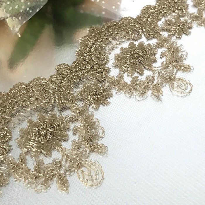 レース チュールレース 手芸 花柄 花模様 メタリックレース ゴールド 花柄 衣装 刺繍 リボン 手作り 素材 装飾 材料 ダンス衣装 バレエ衣装