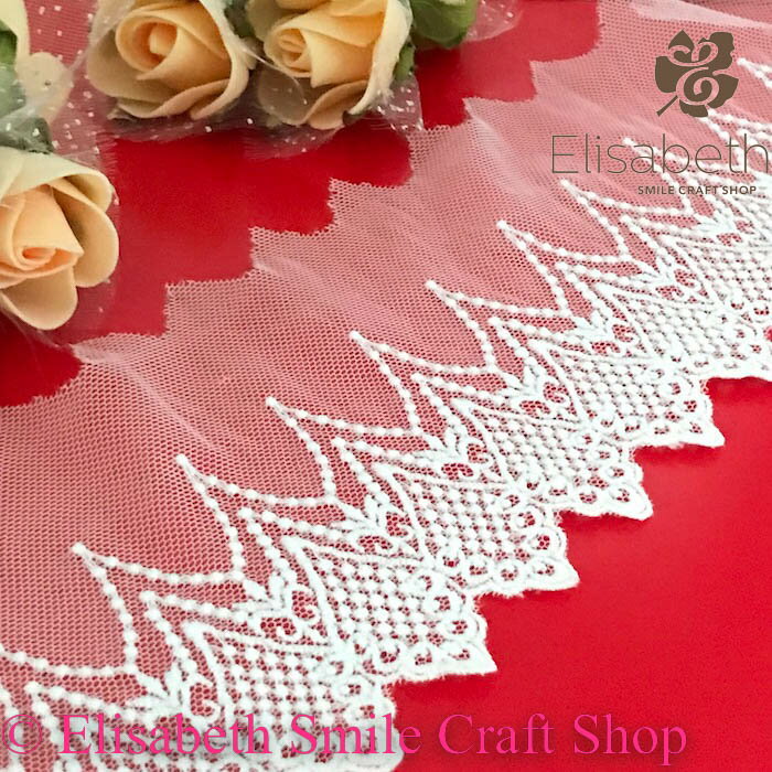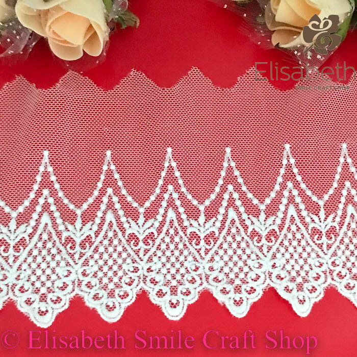 花模様の刺繍入りチュールレースになります。 ステージ衣装、ダンスのコスチューム、コスプレ、 人形のドレス、舞台衣装、バレエ衣装、 衣装の装飾、ハンドメイド材料などにおすすめです。 サイズ:W10cm カラー:ホワイト 長さ:1ヤード(約90cm)
