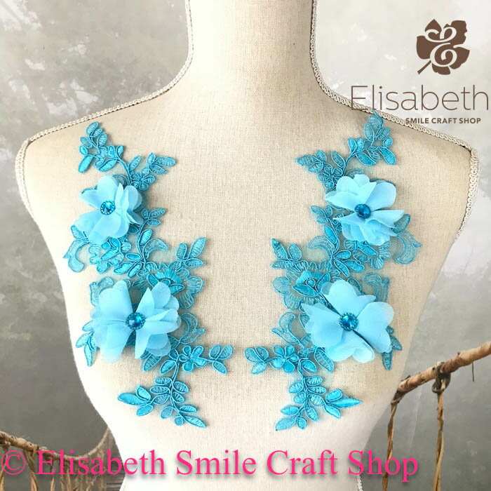 ストーン付きの立体的なお花のチュールモチーフです。 各種イベント、社交ダンス、ドレス、ステージ衣装、 舞台衣装、新体操、バトントワリング、レオタード、 演劇、ミュージカル、ベリーダンス、フィギュアスケート、 バレエ衣装、ウェディング、パーティーなど、 用途に合わせて楽しめるお洒落なアイテムです。 サイズ:H25cm W10cm カラー:ブルー 左右セット ※当店のオリジナルデザインとなります。