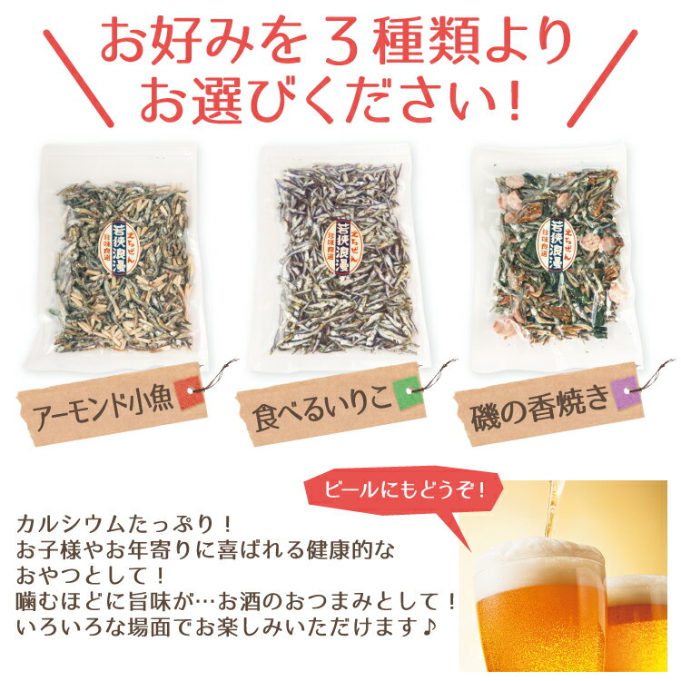 【大容量】選べるおつまみ小魚 お歳暮 冬ギフト お年賀 海鮮 ギフト 詰め合わせ (アーモンド小魚 or 食べるいりこ or 磯の香焼きの3種からお好みの組み合わせを選べます) チャック付き袋入り 美味しい贈物