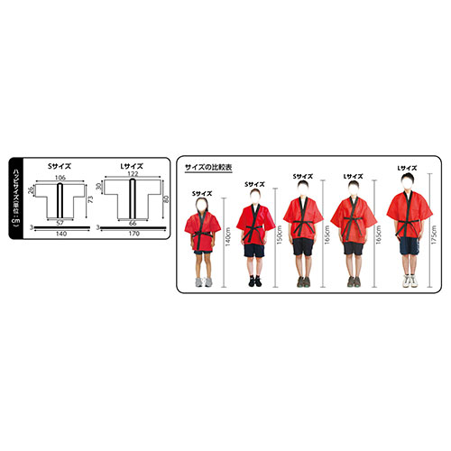 運動会・発表会・イベント ハッピ安くて丈夫!軽さと撥水性を持ち合わせた不織布製絵が描ける!水性・油性ペン/色えんぴつ/クレヨンLサイズ(高校生〜成人向け)※実際の色と異なる場合がございます。【商品サイズ(単位mm)】 1220×800mm(袖巾300・身巾660mm) 【セット内容】 帯付(1700×30mm) 【重量】 134g 【材質】 ポリエチレン 【包装形態】 袋 【包装サイズ】 470x480x15mm 【生産国】 中国