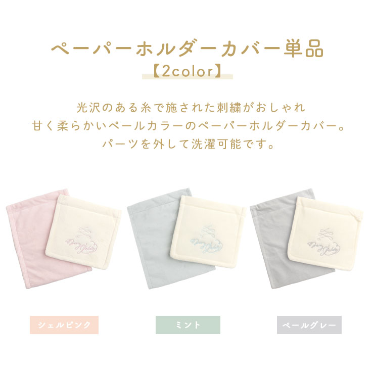トイレ ペーパーホルダーカバー 単品 おしゃれ 可愛い 甘い メリージェラート パステルカラー 刺繍 グレー ピンク ミント トイレタリー ナチュラル シンプル かわいい 洗える 柔らかい