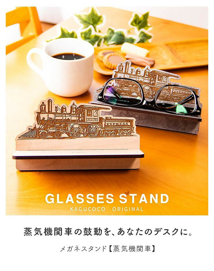★10%OFF★ メガネスタンド 木製 蒸気機関車 SL デザイン おしゃれ メープル ウォールナット 4.0mm厚の丈夫な国産MDF おしゃれ 国産 北欧 かわいい 雑貨 まとめ買い 眼鏡スタンド カードスタンド 名刺スタンド メガネスタンド008