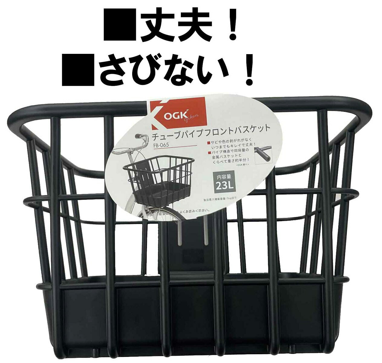 OGK 技研 オージーケー まえ用バスケット FB-065 チューブパイプフロントバスケット プラバスケット 大型 大容量 錆びないー まえ用バスケット FB-065 チューブパイプフロントバスケット プラバスケット 大型 大容量 ブラック