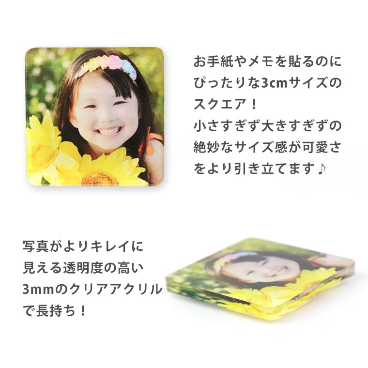 アクリル製 フォトマグネット 正方形 4個セット 3cm×3cm アンシャンテラボ / オリジナル商品 卒業 卒団 記念品 アクリル 写真 思い出 アルバム おしゃれ 母の日 敬老の日 記念 お祝い 思い出 出産祝い 入学祝 子供 こども 子ども 孫 親 イラスト 【ゆうパケット対応】