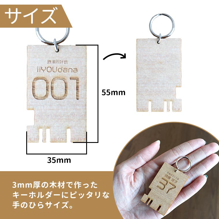 木製 銭湯キー風キーホルダー 彫刻 55×35mm 厚さ3mm アンシャンテラボ / オリジナル商品 銭湯 鍵 レトロキーホルダー サウナ サウナー 整う 昔懐かし ルームキー 番号札 ロッカーキー ロッカー キー 施設 名入れ 文字入れ オリジナル オーダーメイド【ゆうパケット対応】