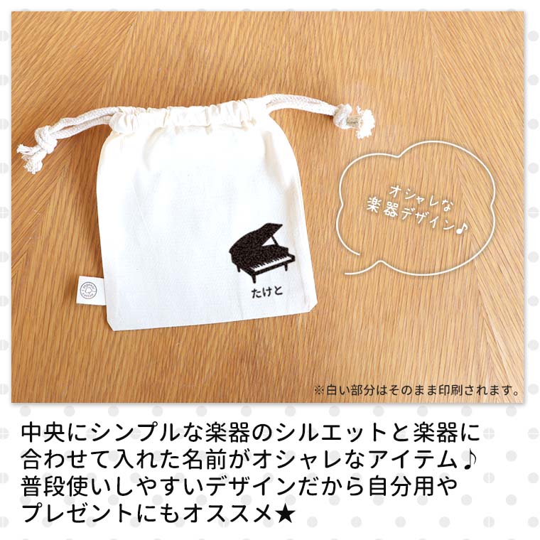 オーガニックコットン巾着 ナチュラル 吹奏楽 オリジナルチームグッズ アンシャンテラボ / オリジナル商品 楽器 卒業 卒団 記念品 ノベルティ グッズ 部活 フルート クラリネット ホルン ドラム 引退 先輩 プレゼント【無料メッセージシール付き】【ゆうパケット対応】