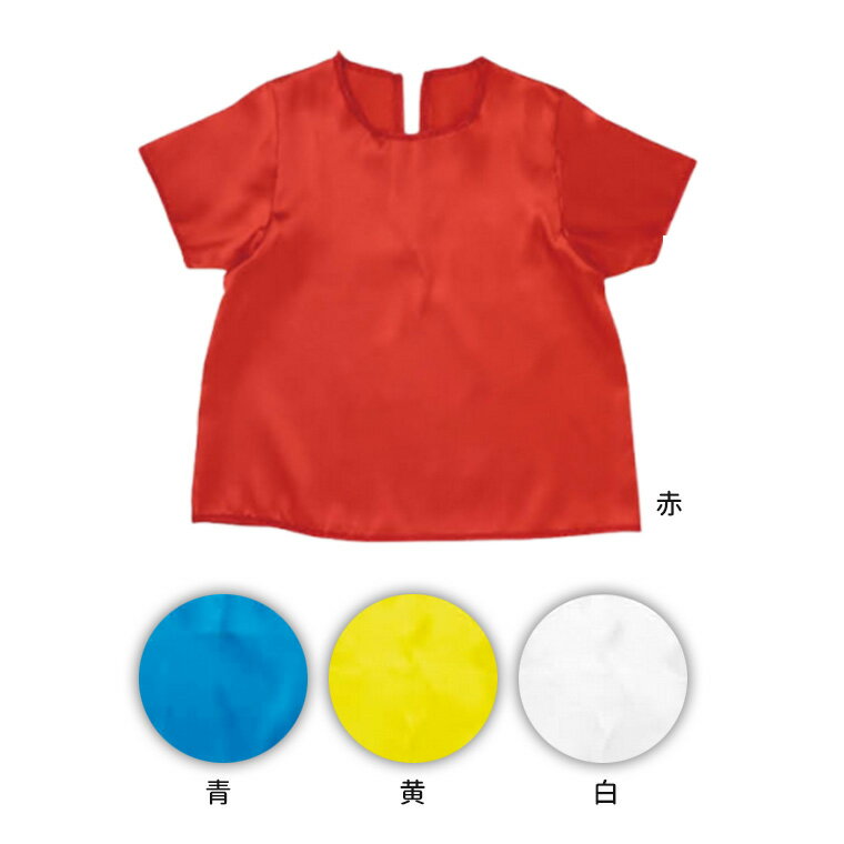 衣装ベース ソフトサテン半袖シャツ Jサイズ 全4色 1個入 / サテン地 サテン生地 つやつや ブラウス 袖あり 白 青 赤 黄 色分け 子ども用 ダンス コスチューム イベント 学芸会 文化祭 発表会 応援 衣装 運動会 アーテック artec 【ゆうパケット対応】