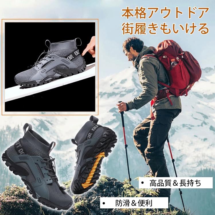ウェーディングシューズ 男性 フィッシング シューズ 水陸両用 釣りシューズ 防撥水 滑り止め 軽量 通気 耐久性 スパイクピン フィッシングブーツ 快適な着心地 歩きやすい 磯靴 海用靴 23.0cm-29.0cm 滑り止め、耐摩耗機能を備え、快適な履き心地の特別なアウトドアハイキングシューズです。 【通気性&軽量設計】アッパーには通気性と軽量性を兼ね備えたメッシュ素材を採用!放熱性と防臭機能が良く、靴内の蒸れを抑え快適な履き心地を実現します。【滑り止めと耐摩耗性】広い間隔で配置されたユニークなソールとタン、防泥デザイン。 グリップ力の強いソールを使用し、しっかりと歩きます!足首をしっかり守りながら動きを妨げない構造で、重い登山鞄を背負っても岩場を歩いてもグラつきません。【衝撃吸収設計】超耐衝撃性を備えたハードソールは、登山時に十分なサポートを提供します。 インソールは軽量で弾力性に優れ、動きに効果的に反応し、圧力を吸収・分散します。【性能】滑り止め、耐摩耗機能を備え、快適な履き心地の特別なアウトドアハイキングシューズです。 アッパーには丈夫で柔らかい上質なメッシュを使用しており、夏のお出かけにぴったりです。 靴底は滑りにくく、路面も疲れにくく、滑りやすく、歩きやすいです。 効果も良く、雨の日や旅行、アウトドアなどのシーンでも活躍する一足です。【多用途】ランニング、ウォーキング、ジョギング、スポーツ、スポーツなど様々なシーンで活躍する多機能スニーカーです。 通勤、通学、雨の日、お出かけ、ハイキング、旅行、父の日のギフト、贈り物、普段着にもカジュアルな合わせをお楽しみいただけます。 5