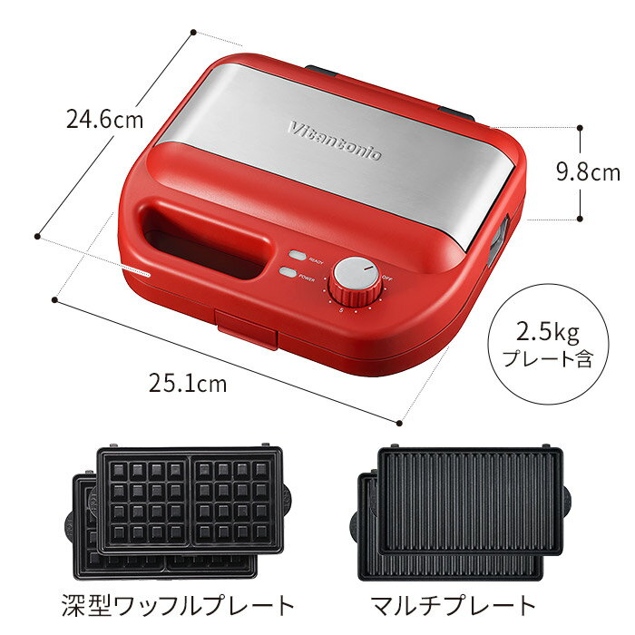 【特典付き&365日出荷】 ワッフルメーカー ホットサンドメーカー 電気 Vitantonio ビタントニオ ワッフル&ホットサンドベーカー アイボリー レッド ブラック ホットサンドメーカー タイマー VWH-600