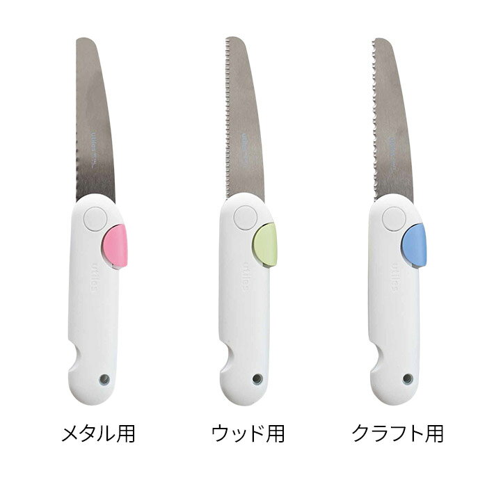 ユーティレス ハンディのこぎり utiles petit saw ペティソー ステーショナリーのようなかわいい見た目のハンディのこぎり。刃物の本場・兵庫県播州で作られており、抜群の切れ味を持ったハンディソーです。女性やシニアの方も使いやすいコンパクトサイズ、握りやすいグリップで扱いやすく作られています。折り畳みができ、引き出しなどへ収納しても安心。ポケットにも入るのでキャンプやガーデニングの際も活躍します。メタル、ウッド、クラフト用と用途に合わせた3種類の刃をご用意しています。【楽天限定特典付き】 折り畳み 小さい 小型 ノコギリ 万能 鋸 ハンディ 粗大ごみ 解体 DIY 便利 切れる 丈夫 アウトドア 枝切り 園芸 ガーデニング 木材 掃除 絨毯 鉄パイプ おしゃれ プレゼント ギフトユーティレス ハンディのこぎり utiles petit saw ペティソー (日本製 折りたたみ ノコギリ) 豪華 特典付き DETAIL SIZE COLOR 商品名 ユーティレス ハンディのこぎり utiles petit saw ペティソー 品番 PT-24 PT-16 PT-C バリエーション メタル用 ウッド用 クラフト用 サイズ 使用時:約 全長26cm × 幅1.8cm × 高さ4.3cm 折り畳み時:約 全長15cm × 幅1.8cm × 高さ4.3cm 切断能力 メタル用:スチールパイプ直径2.5cm、アルミ厚さ1cm、プラスチック厚さ1cm ウッド用:木材5cm角、板3cm角、庭木・額縁など クラフト用:発泡スチロール、ペットボトル、ダンボールなど 製造国 日本 ステーショナリーのようなかわいい見た目のハンディのこぎり。刃物の本場・兵庫県播州で作られており、抜群の切れ味を持ったハンディソーです。女性やシニアの方も使いやすいコンパクトサイズ、握りやすいグリップで扱いやすく作られています。折り畳みができ、引き出しなどへ収納しても安心。ポケットにも入るのでキャンプやガーデニングの際も活躍します。メタル、ウッド、クラフト用と用途に合わせた3種類の刃をご用意しています。 生活雑貨 ランキング