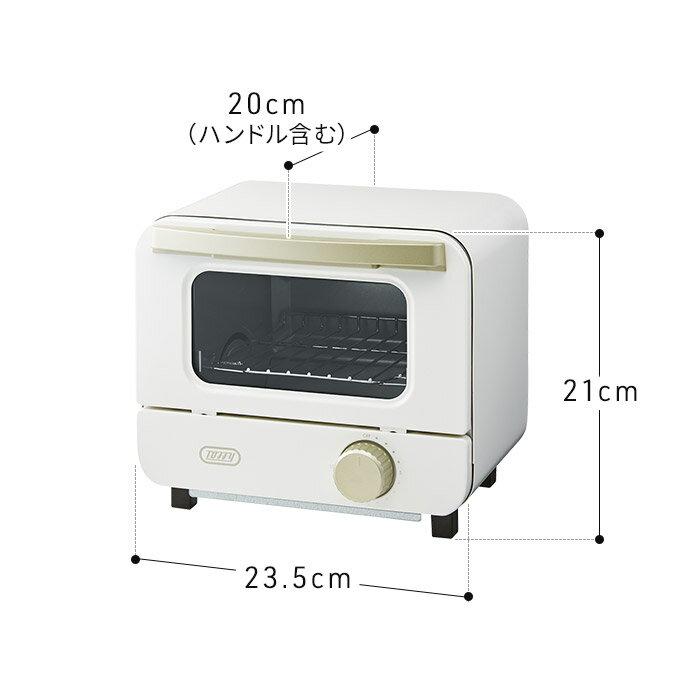Toffy ハッピーコレクション オーブントースター ミニ K-HTS1 食パン1枚がちょうど入るミニトースター。ひとり暮らしの小さなキッチンやテーブルにも置けるサイズです。上下の2灯ヒーターで小型でもしっかり両面を焼きも可能です。ボリュームのある総菜などの温め直しもでき、付属のトレイを使用すれば、トースト以外のさまざまな料理にも活用できます。最大15分まで調理時間を設定できます。また庫内温度調節のため、自動的にヒーターを入・切するサーモスタットが搭載されており庫内の温度の上がりすぎを防いでくれるので安心です。Toffy ハッピーコレクションの鮮やかなカラーリングも特長です。 【p10】【楽天限定特典付き】 トースター トースト 1枚焼き トフィー ミニ 一人暮らし 食パン 1枚 タイマー 15分 両面焼き 2灯ヒーター 550W 小型 コンパクト かわいい おしゃれ カラフル グラタン ピザ 餅 キャンピングカー 車中泊 アウトドア トレイ付 キャンプ Toffy Happy Collection ハッピーコレクション オーブントースター ミニ K-HTS1 ホワイト 白 ブルー イエロー 黄 青 ギフト プレゼント 省スペースToffy ハッピーコレクション オーブントースター ミニ K-HTS1 ( トースター 1枚焼き 1人暮らし ) 豪華 特典付き SIZE COLOR 商品名 Toffy ハッピーコレクション オーブントースター ミニ K-HTS1 品番 / JAN パンナホワイト:K-HTS1-PAW / 4934122096565 フレンチブルー:K-HTS1-FBL / 4934122096558 カナリアイエロー:K-HTS1-CAY / 4934122096541 サイズ 約 横幅23.5cm × 奥行き20cm × 高さ21cm 庫内寸法:横幅16cm × 奥行き15cm × 高さ6.5cm コード長:約0.85m 重量 約1.7kg(トレイ含まず) 定格消費電力 550W 電源 AC100V 50-60Hz タイマー 15分 製造国 中国 付属品 トレイ、ユーザーズガイド(保証書含む) 保証期間 お買い上げ日より1年間 食パン1枚がちょうど入るミニトースター。ひとり暮らしの小さなキッチンやテーブルにも置けるサイズです。上下の2灯ヒーターで小型でもしっかり両面を焼きも可能です。ボリュームのある総菜などの温め直しもでき、付属のトレイを使用すれば、トースト以外のさまざまな料理にも活用できます。最大15分まで調理時間を設定できます。また庫内温度調節のため、自動的にヒーターを入・切するサーモスタットが搭載されており庫内の温度の上がりすぎを防いでくれるので安心です。Toffy ハッピーコレクションの鮮やかなカラーリングも特長です。 Toffy ( トフィー ) シリーズは こちら キッチン家電 ランキング