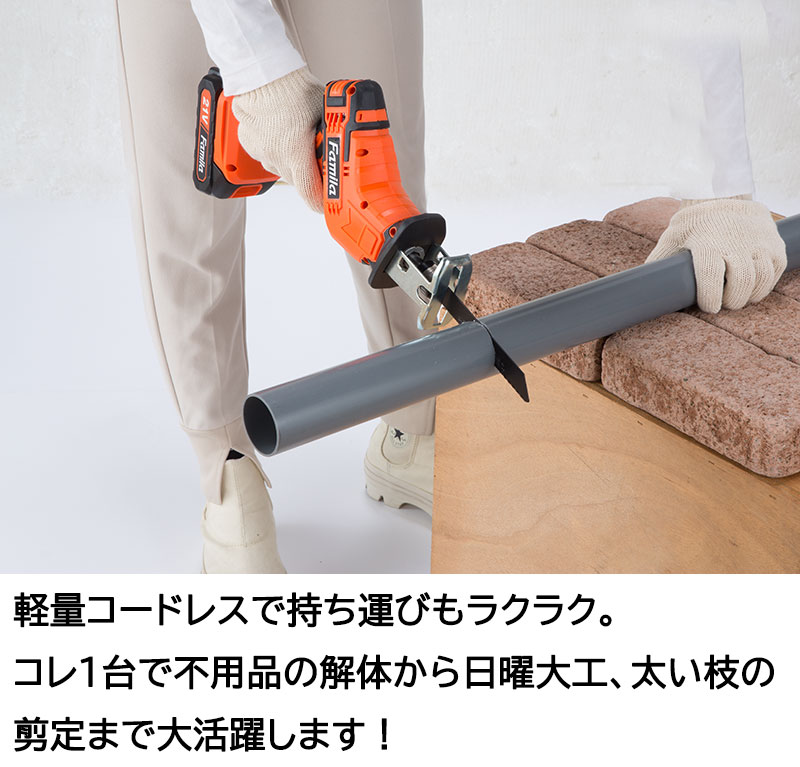 \店内全品エントリーで10倍!/ 当店限定耐震軽減手袋付き!充電式コードレス電動ノコギリ ファミラ 充電式 コードレス のこぎり 電動のこぎり高速 切断 枝切り 解体 電動 大型 庭木 ガーデニング 庭園 園庭 庭 剪定 パワフル 太枝