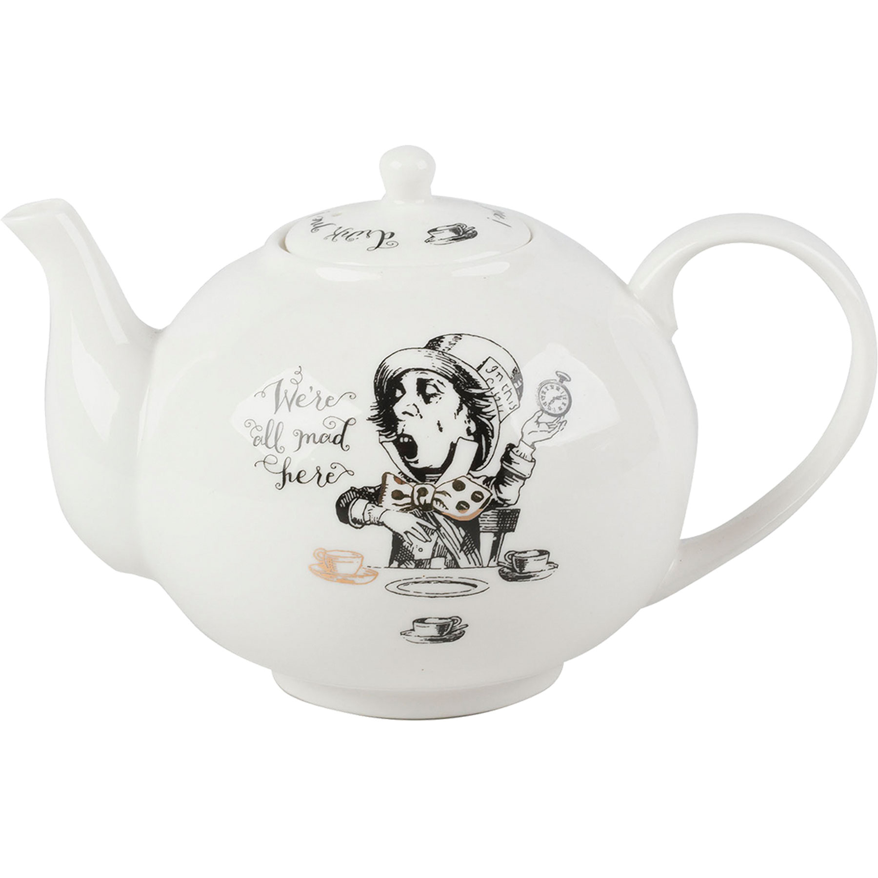この素敵なアリス・イン・ワンダーランドティーポットで、ノスタルジックなワンダーランドへの旅に出かけましょう。ティーポットは、長持ちする丈夫さと美しさのためにファインチャイナで作られています。マッドハッターのお茶会でのアリスを描いた白黒のイラストが表面を飾っています。これらはアリス・イン・ワンダーランドのカードゲームにインスパイアされたもので、さらにそれはサー・ジョン・テニエル(1820-1914)によるオリジナルのアートワークに基づいています。ゴージャスなデザインに贅沢な仕上げを加えるゴールドのディテールがあり、アイコニックな「Drink Me」の引用が蓋を飾っています。マッチングのギフトボックスに詰められ、引っ張ると製品が現れる「Pull Me」タブがついています。これは有名な物語のファンに最適なアリス・イン・ワンダーランドのギフトです。または、このシリーズで利用可能なマグ、カップ、その他の食器を選んで、独自のアリス・イン・ワンダーランドティーセットを作成してみてはいかがでしょうか?主な特徴:容量:1100ml、ファインチャイナ、リボン付きのハットボックス 【サイズ】 W21.5xD11xH12cm 【本体重量】 470 【素材】 ファインチャイナ 【原産国】 中国