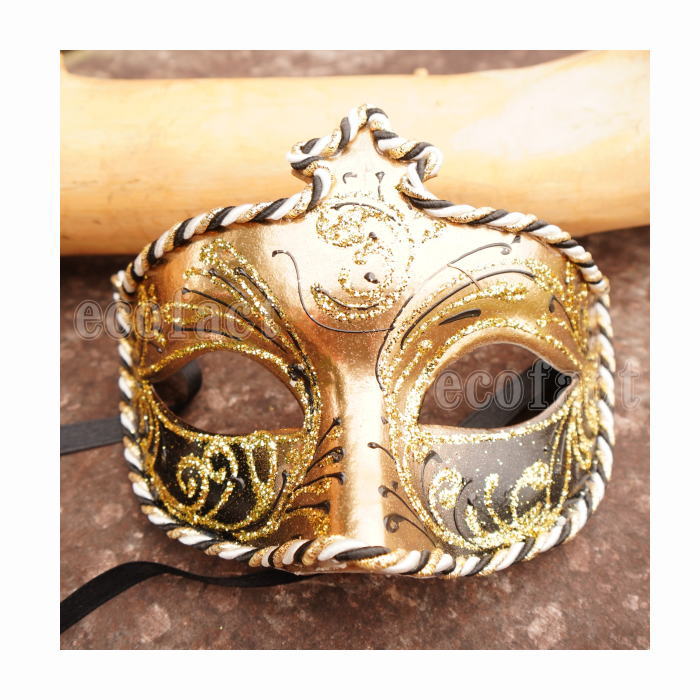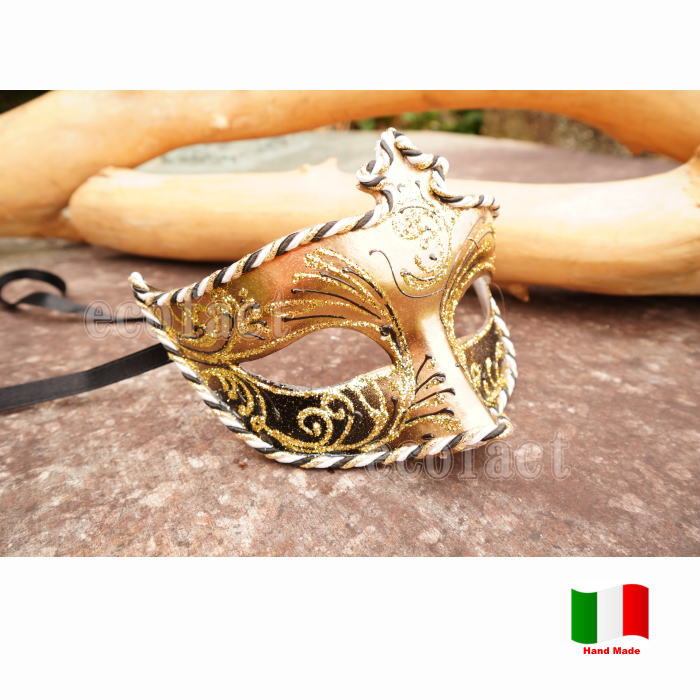 ベネチアンマスク(ブラック/ゴールド)217 ハロウィン コスプレ コスチューム パーティー 衣装 仮面 変装 仮装 仮面舞踏会 (アイマスク イタリア製 おしゃれ かわいい 高級 手作り アンティーク レトロ マスケラ)