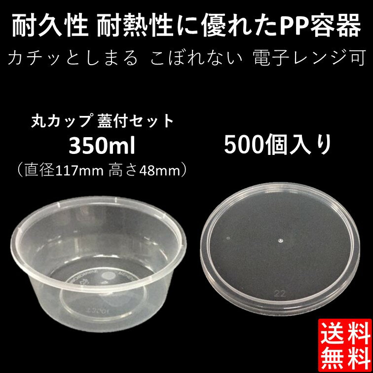 【汁漏れに強い テイクアウト容器】PP容器 350ml 500個 嵌合蓋付きセット ご飯 惣菜 漬物 カレー スープ スイーツ 電子レンジ可 再利用可