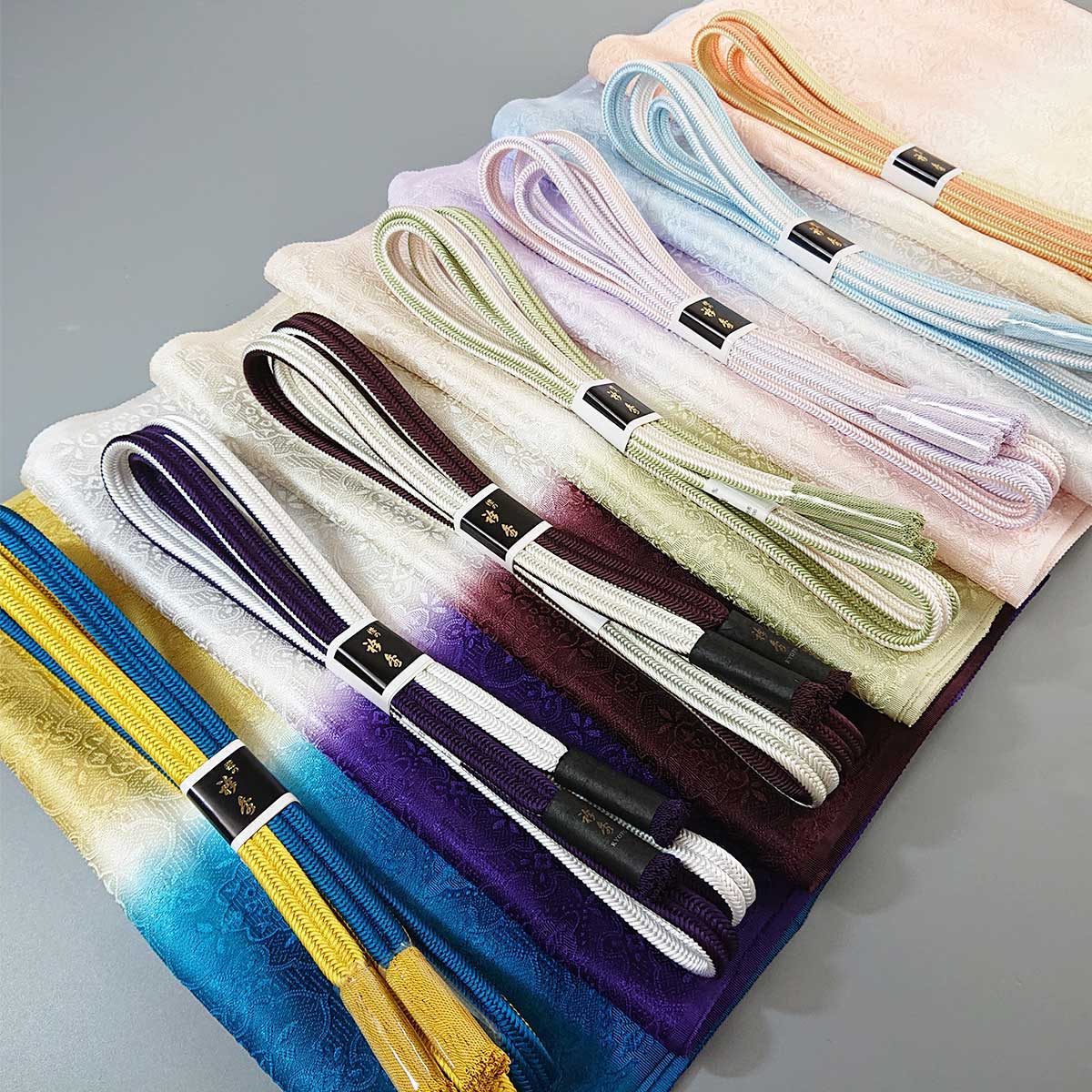 ショップトップはこちら き楽っくはこちら 替え衿はこちら 替え袖はこちらそうそういくつも買えない小物。 1枚で、1本で、何通りも組み合わせが楽しめたらとすなおさんが考案したのが、こちらの 帯揚げ・帯締めセット。 色は、すなおさんが私物で「ボロボロになるまで」使ったものに限定。 経験上、本当に使える色を再現しました。 リバーシブルの帯締めは、締めるときに絹鳴りのする、締まりいい冠組。ボサボサにならない撚り房に。 帯揚げは、エレガントな織巧紋。華やかで程よいハリがあり、カジュアルにもきちんとしたいシーンにも活躍してくれます。 シワになりにくく、結ぶと「絶対きれいに決まる」生地というのも、着つけ講師としてお薦めポイント。 また、地紋や艶感の特性から、袷の時期だけでなく、単衣にも合わせられる。 帯締めはリバーシブルでお使いいただけます。 表×表 表×裏 裏×裏 3通りの表情をお楽しみください。 房は扱いやすいより房です。 ◆◆◆カラーをお選びください◆◆◆ ↑カラー【月白×白群】↑ 爽やかな色の組み合わせになります。総柄小紋もスッキリと都会的に。 ↑カラー【薄卵×鶯】↑ 甘すぎず、辛すぎず程よいバランスです。シックな紬も華やかに演出してくれます。 ↑カラー【白緑×焦茶】↑ この一枚でぐっとモダンな雰囲気に。紬との相性抜群。 ↑カラー【白銀×茄子紺】↑ 深い紫で引き締め効果も。インパクトのある帯も引き立ててくれます。 ↑カラー【薄桜×淡藤】↑ ほんのり上品な甘さを加えたいときに。粋な縞も女性らしく演出してくれます。 ↑カラー【孔雀青×芥子】↑ 手持ちの着物が今すぐ垢抜ける、効果絶大の配色です。 ↑カラー【檸檬×杏子】↑ 待望の新色です! 素材 帯揚げ帯締め 絹100% サイズ 帯揚げ:約幅30cm×長さ180cm 帯締め:約幅1cm×長さ155cm 協力 きものすなお様 株式会社プレジデント社様 製造元 株式会社衿秀 日本製