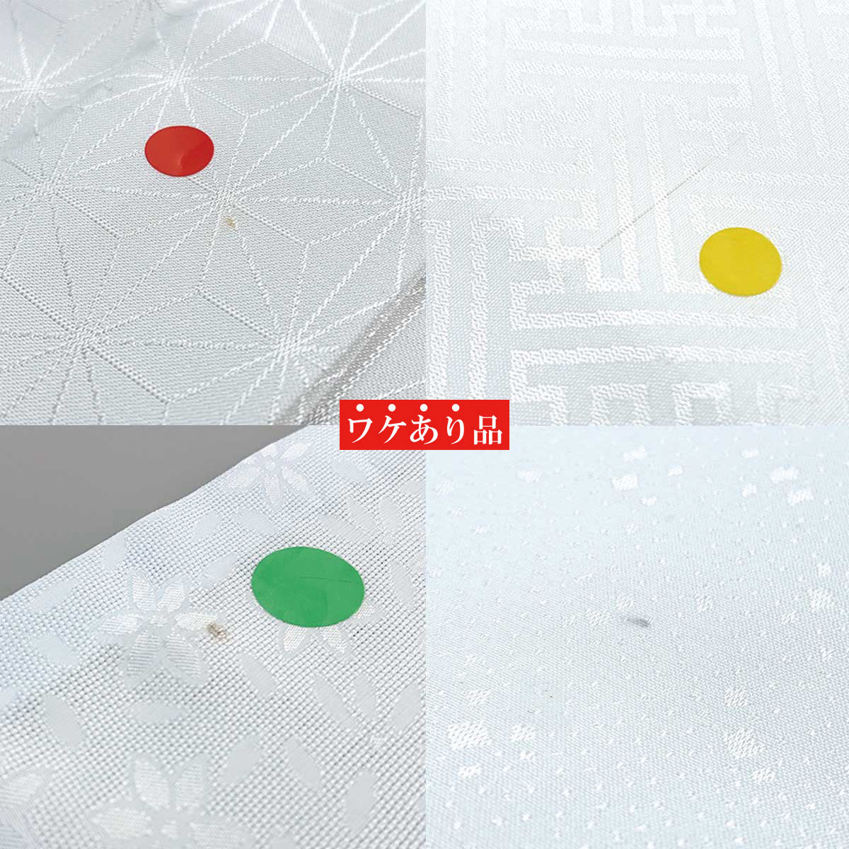 ショップトップはこちら き楽っくはこちら 替え衿はこちら 替え袖はこちらワケアリ替え袖 襟の衿秀・き楽っく替え袖のワケあり商品を集めました。 多くのオリジナル商品を創る過程で、どうしても難が発生します。 良品としてお届け出来ない商品ををお値打ち価格でご提案させて頂きます。 ※ご確認ください ※こちらは「ワケあり品」になります。 画像の箇所のように色飛びやほつれがございます。 お使いいただくのに支障はございませんが、お買い求めの際はご承知の上でご検討くださいませ。 ◆◆カラーをお選びください◆◆◆ ↑カラー【A】↑ 綸子友禅 扇 紅葉 水色 ポリエステル100% 半無双仕立て 袖丈1尺3寸 ※ランダムな箇所に難がございます。 お選びいただけませんのでご了承ください。 ↑カラー【B】↑ 綸子友禅 万寿菊 水色 ポリエステル100% 半無双仕立て 袖丈1尺3寸 ↑カラー【C】↑ 綸子友禅 花柄 丸紋 薄黄色 ポリエステル100% 半無双仕立て 袖丈1尺3寸 ↑カラー【D】↑ 友禅 大梅 ポリエステル100% 袖丈1尺3寸 ※ランダムな箇所に難がございます。 お選びいただけませんのでご了承ください。 ↑カラー【E】↑ 友禅 くわい ポリエステル100% 袖丈1尺3寸 ※ランダムな箇所に難がございます。 お選びいただけませんのでご了承ください。 ↑カラー【F】↑ 綸子友禅 藤色 ポリエステル100% 半無双仕立て 袖丈1尺3寸 ↑カラー【G】↑ 綸子友禅 猫 ピンク ポリエステル100% 半無双仕立て 袖丈1尺3寸 ↑カラー【H】↑ 唐草柄 袷 白 ポリエステル100% 半無双仕立て 袖丈1尺3寸 素材 商品ページに記載 ご確認ください こちらは「ワケあり品」になります。 お使いいただくのに支障はございませんが、お買い求めの際はご承知の上でご検討くださいませ。 ※※※ランダムな箇所に難がございます。 個体は選べませんのでご了承くださいませ。※※※ 袖丈の別注 こちらの生地は寸法の別注を受られません 製造元 株式会社 衿秀 配送方法 【送料無料】 こちらの商品はメール便での配送となります。 そのため日時指定には対応しておりません。 3点以上お買い上げの場合はゆうパックでの配送になります。 ※配送方法変更による追加料金は発生致しません。