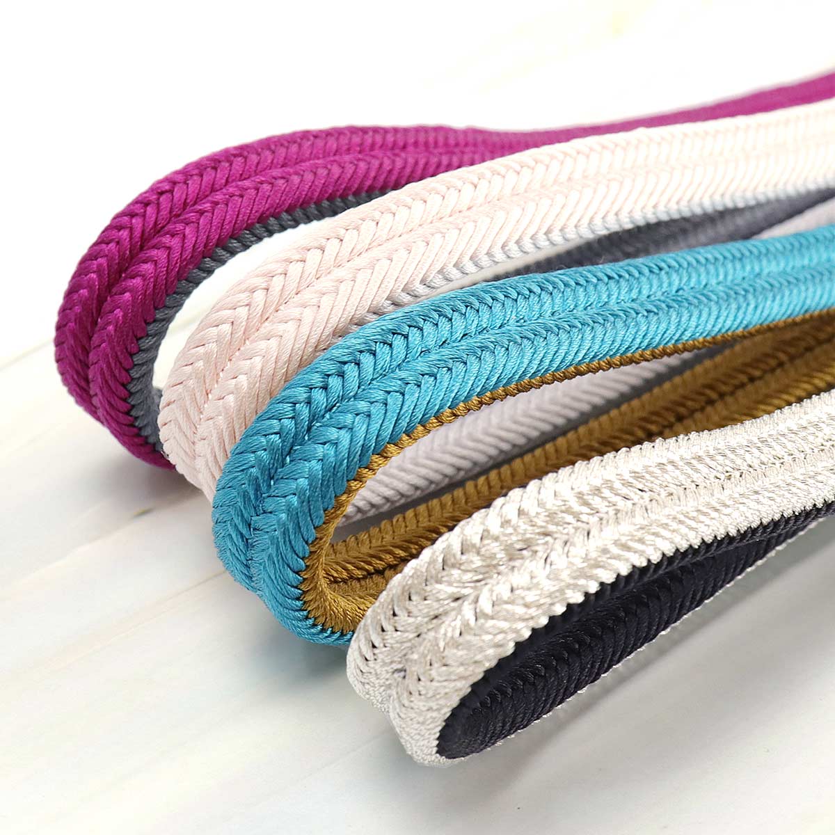 ショップトップはこちら き楽っくはこちら 替え衿はこちら 替え袖はこちら帯締めの定番中の定番、ゆるぎ紐。 襟の衿秀らしい色使いで作りました。 通常の帯締めはおおよそ150cmの長さが多いですが こちらの帯締めは約180cmというロングサイズで余裕を持って締めていただけます。 帯締めの定番中の定番、ゆるぎ紐。 襟の衿秀らしい色使いで作りました。 房は扱いやすい「より房」です。 この帯締めの特徴は1本で3通りの色使いが出来る事! 表×表 裏×裏 表×裏 と、お召し物に合わせて組み合わせをお楽しみください。 ◆◆◆カラーをお選びください◆◆◆ ↑カラー【A】勿忘草色×吉岡染↑ ↑カラー【B】白銀×茄子紺↑ ↑カラー【C】ミントグリーン×白鼠↑ ↑カラー【D】淡紅色×白藤↑ ↑カラー【E】白緑×焦茶↑ ↑カラー【F】薄卵×鶯↑ ↑カラー【G】薄桜×灰色↑ ↑カラー【H】月白×白群↑ ↑カラー【I】薄桜×硫黄色↑ ↑カラー【J】樺色×丁子茶↑ ↑カラー【K】黒×銀糸シルバー↑ ↑カラー【L】黒×金糸ゴールド↑ ↑カラー【M】乳白色×草色↑ 素材 絹100% サイズ 【巾】約1cm【長さ】約180cm(房部分を除く) 製造元 株式会社 衿秀日本製