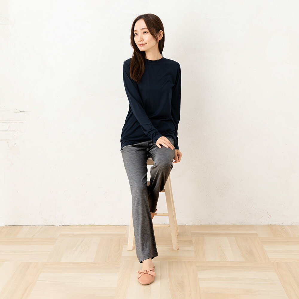 商品詳細 サイズ Mサイズ 対応ヒップ:87-95cm 股上:約28cm 股下:約71cm ウエストゴム上り:約33cm わたり幅:約25cm 裾幅:約22cm Lサイズ 対応ヒップ:92-100cm 股上:約28cm 股下:約71cm ウエストゴム上り:約35cm わたり幅:約25cm 裾幅:約22cm ※平置き実寸サイズです。 ※デリケートな素材を使用しておりますので、カラーによって仕上がりサイズに2-3cmの誤差がございます。予めご了承くださいませ。 カラー 紺色/うすずみ 素材 シルク95%、ポリウレタン5% 原産国 日本製 注意点 ※天然繊維の性質上、お洗濯の際にどうしても縮みが起こる可能性がございます。何卒ご了承下さいませ。また、大変デリケートな素材ですので、お取り扱いには十分ご配慮下さいますようお願い申し上げます。 お手入れ方法 洗濯機可 こちらの商品は洗濯機可です。 ●手洗いをオススメします。 洗濯機で洗う場合は、裏返してネットに入れ、手洗い水流でお洗濯してください。 ●色落ち・色移りする場合がありますので、単独で洗ってください。 ●必ず中性洗剤(またはシルク専用洗剤)を使用してください。 ●漂白剤または漂白剤入りの洗剤は使用しないでください。 ●濡れた状態で放置すると色移りの原因になります。 ●形を整え直射日光を避けて陰干ししてください。 ●乾燥機に入れないでください。シルク ルームパンツ ストレッチ ソフトベア天竺 日本製 ウォッシャブル加工 グレー ネイビー ブラック 黒 M/L ストレッチ性抜群のシルクで 仕立てたルームパンツ。 ●薄手で軽やかな履き心地だから楽に過ごせるイージーパンツ ●シルクソフトベア天素材でとっても伸びがよく締め付けのないやさしいフィット感 ●吸放湿性や保温性に優れたシルクで、汗ばむ季節や冷えが気になる季節のお部屋着として一年中活躍 ●特殊なウォッシャブル加工を施し、色落ちや毛羽立ちを抑え、洗濯機で洗えます 着心地の良さ・快適さ ポリウレタンが入ったシルクベア天素材はとっても伸びがよく、また戻りもしっかりあるので、体の動きに無理なくフィットします。シンプルなディテールと、ソフトなフィット感で軽い履き心地はデイリー使いにぴったり。 生地について シルク ソフトベア天竺 シルクにポリウレタンを少し入れることで伸び率を高めたシルクベア天竺素材。 ソフトな生地で弾力があり、体の動きに合わせて心地よくフィットしてくれます。 薄手ですが透け感が少なく安心の着用感。表にも響きにくいです。 シルク100%なのに洗濯機で洗えます。 特殊なウォッシャブル加工を施し、色落ちや毛羽立ちを抑え、よりお手入れしやすくなっています。 4色のリボンを白い紙の上に置いて透け感を比較しました。 薄手ですが透け感はほぼありません。 シルクソフトジャージーの商品一覧へ デザインについて ストレッチ性抜群のシルクで仕立てたルームパンツはゆったりシルエットでリラックス感のある履き心地に。吸放湿性・速乾性に優れたシルクは 汗をかいてもさらさら。ルームウェアとして おうちでのリラックスタイムはもちろん、ヨガなどのウェアとしてもおすすめ。シルクベア天竺の生地は、薄手ですがしっかりしていて透け感もほとんどなく安心。シンプルなディテールで、デイリー使いにぴったり。毎日履きやすい定番カラーを揃えました。 しっかり伸びて楽な履き心地 ウエストゴム入り(紐は入っていません) ゴム取り換え口がついています カラー うすずみ 紺色 こちらもどうぞ