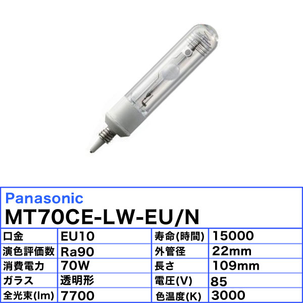 パナソニック MT70CE-LW-EU/N セラミックメタルハライドランプ 70W 70形 透明形 EU10 MT70CELWEUN「送料無料」