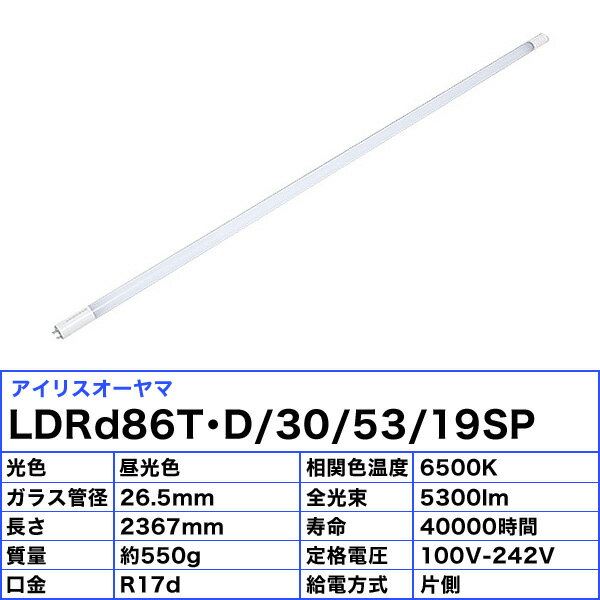 ★アイリスオーヤマ LDRd86T・D/30/53/19SP 蛍光灯 LED 直管 110W 昼光色 片側給電 LDRd86TD305319SP「送料無料」「FR」