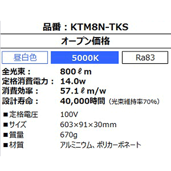 商品の詳細 ●型番:KTM8N-TKS ●メーカー:アイリスオーヤマ ●分類:住宅向け 屋内向けキッチン ●消費電力:14W ●製品サイズ:W603×D(L)91×H30mm ●質量:670g ●シリーズ:LEDキッチンライト ●光色:昼白色 ●色温度:5000K ●演色性評価数:Ra83 ●光束:全光束 0灯・800lm ●寿命:40000時間 ●機能:人感センサー ●消費電力:14W ●消費効率:57.1429lm/W ●定格電圧:100V ●センサー:人感センサー ●電源種類:AC 関連キーワード:キッチンライト LED アイリスオーヤマ ledキッチンライト 棚下 オーデリック OB555094R SH9120LD OL551337NR OB255284R S OL291126R3B OB555094R ダイコ― DXL-81238 DCL-38506W DCL-40785Y DXL-81238 コイズミ AH42573L AH53800 ジャッピー JBK53800 パナソニック LSEB7001LE1 LSEB7002LE1 タキズミ TG20019D