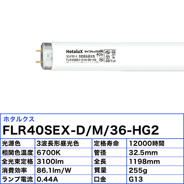 [10本セット]HotaluX ホタルクス FLR40SEX-D/M/36-HG2 ライフルックDHG 40形 ラピッドスタート 3波長形昼光色 36ワット 色温度6700K 「送料無料」