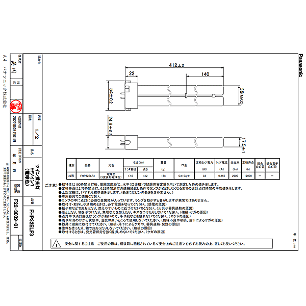 商品の詳細 ●5本セット 送料無料 ●Panasonic ツイン蛍光灯 ツイン1 32ワット FHP32ELF3 電球色 Panasonic パナソニック パナソニック株式会社 ライティング事業部 ●メーカー:パナソニック ●品名:ツイン蛍光灯 ・スリムなガラス管をブリッジ技術で結合させた蛍光灯。 ツイン蛍光灯■Hfツイン1(2本ブリッジ) ●種別:32形 ●品番:FHP32ELF3 ●光色:電球色(3波長電球色) ●色温度:3000K ●寸法:ガラス管径 17.5×長さ 412mm ●質量:158g ●口金:GY10q-9 ●定格ランプ電力:32W ●ランプ電流:0.255A ●全光束:2900lm ●定格寿命:12000時間 ・御注文品番:FP32ELF3 ・POSコード(下6桁):595930 (JAN:4549980595930) ※品番:FHP32EL・・・全商品と互換性がございます。 詳しくは是非お気軽にお問い合わせ下さい。 ※沖縄・離島一部指定地域への配送は別途送料お見積りとなります。 是非お気軽にお問合せ下さい。