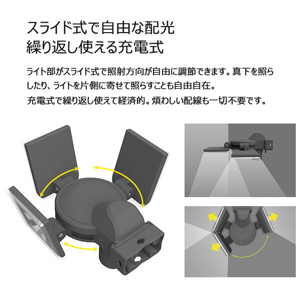 ムサシ musashi LED-RC830 LEDセンサーライト 5Wx3灯 スライド型 着脱式USB充電バッテリー 明るさ1200ルーメン LEDRC830「送料無料」