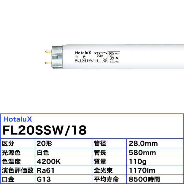 [10本セット]ホタルクス FL20SSW/18 ライフライン 直管スタータ形 20形 18ワット 口金G13 白色 4200K (FL20SSW18R FL20SSW18RF3) 「送料無料」