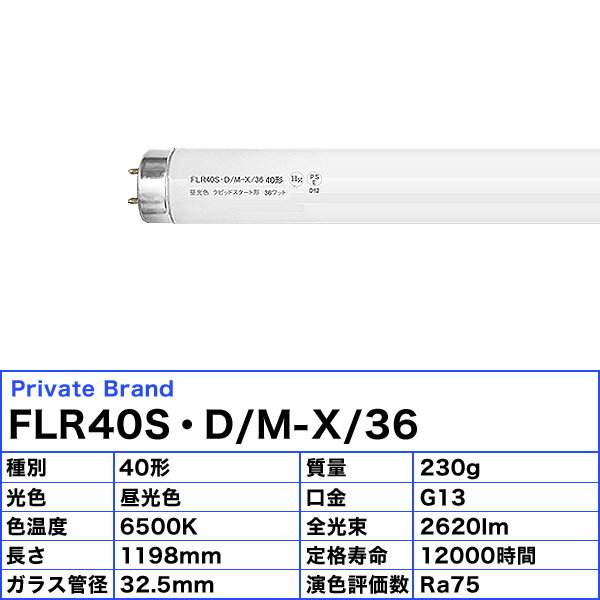 [20本セット]FLR40S・D/M-X/36 ラピッドスタート 昼光色 40形 36ワット 口金G13 色温度6500K 昼光色蛍光ランプ D Private Brand PB 「送料無料」