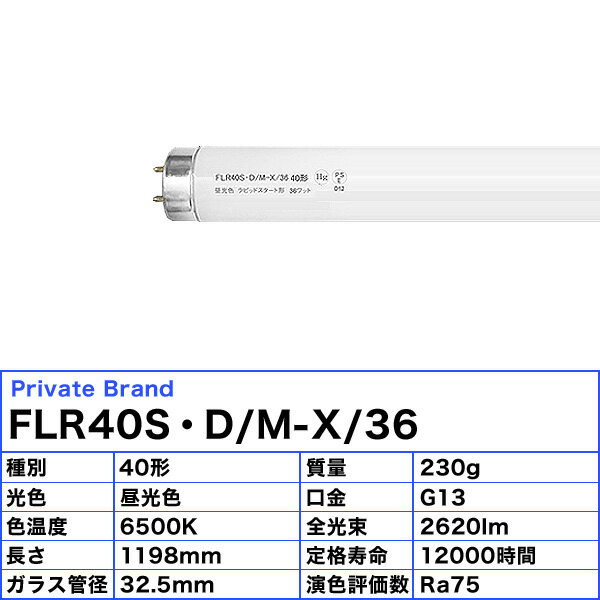 ★[25本セット]FLR40S・D/M-X/36 ラピッドスタート 昼光色 40形 36ワット 口金G13 色温度6500K 昼光色蛍光ランプ D Private Brand PB 「送料無料」