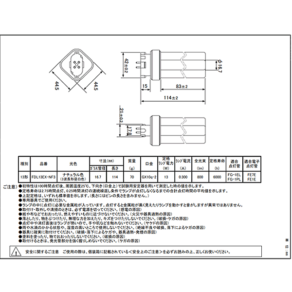 商品の詳細 ●5個セット 送料無料! ●Panasonic ツイン蛍光灯 ツイン2 13ワット FDL13EX-NF3 ナチュラル色(昼白色) (FDL13EX-N/FDL13EX-NJF3/FDL13EX-NCF3) Panasonic パナソニック パナソニック株式会社 ライティング事業部 ●メーカー:パナソニック ●品名:ツイン蛍光灯 ・スリムなガラス管をブリッジ技術で結合させた蛍光灯。 ツイン蛍光灯■ツイン2(4本束状ブリッジ) ●種別:13形 ●新品番: FDL13EX-NF3 (ランプ本体品番:FDL13EXN) ●光色:ナチュラル色(3波長昼白色) ●色温度:5000K ●寸法(mm):ガラス管径 16.7 長さ 114 ●質量(g):70 ●口金:GX10q-2 ●定格ランプ電力(W):13 ●ランプ電流(A):0.300 ●全光束(lm):800 ●色温度(K):5000 ●平均演色評価数:Ra84 ●定格寿命(h):6000 ●適合点灯管: FG-1EL / FG-1PL ●適合電子点灯管: FE7E / FE1E ・御注文品番:FDL13EXNF3 ・POSコード(下6桁):595220 (JAN:4549980595220) ※品番:FDL13EX-N・・・全商品と互換性がございます。 お気軽にお問い合わせ下さい! 同等品(代替品):パナソニック FDL13EXNJF3 ツイン2蛍光灯 パルック FDL13EX-NJF3 FDL13EXNCF3 FDL13EX-NCF3 FDL13EXNF3 FDL13EX-NF3 (ランプ本体品番:FDL13EXN) FDL13EXN FDL13EX-N FL01306186 FDL13EXN 東芝 FDL13EX-N ユーライン2 FDL13EXN FDL13EXN-T FDL13EXNT FDL13EX-N/2 FDL13EXN2 日立 FDL13EX-N DK10 パラライト2 FDL13EXNDK10 三菱 FDL13EX-N BB・2 ダブル FDL13EXNBB2 NEC FDL13EX-Nキキ.10 カルプ2 FDL13EXNキキ10 ※沖縄・離島一部指定地域への配送は別途送料お見積りとなります。 お気軽にお問合せ下さい! ※蛍光灯、27年末で製造禁止へ。 2023年11月3日、スイスジュネーブ会議において、直管蛍光灯の製造と輸出入を2027年末までに禁止することなどで合意。 2025年末での製造・輸出入禁止が既に決まっている、電球形蛍光灯と合わせ、 全ての一般照明用蛍光灯の製造が2027年終了となります。 詳しくは弊社までお気軽にお問合せご相談下さい!