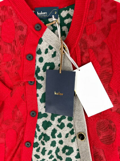 未使用 kolor カラー 2 レッド×グリーン×グレー アシンメトリーレイヤード半袖ニット