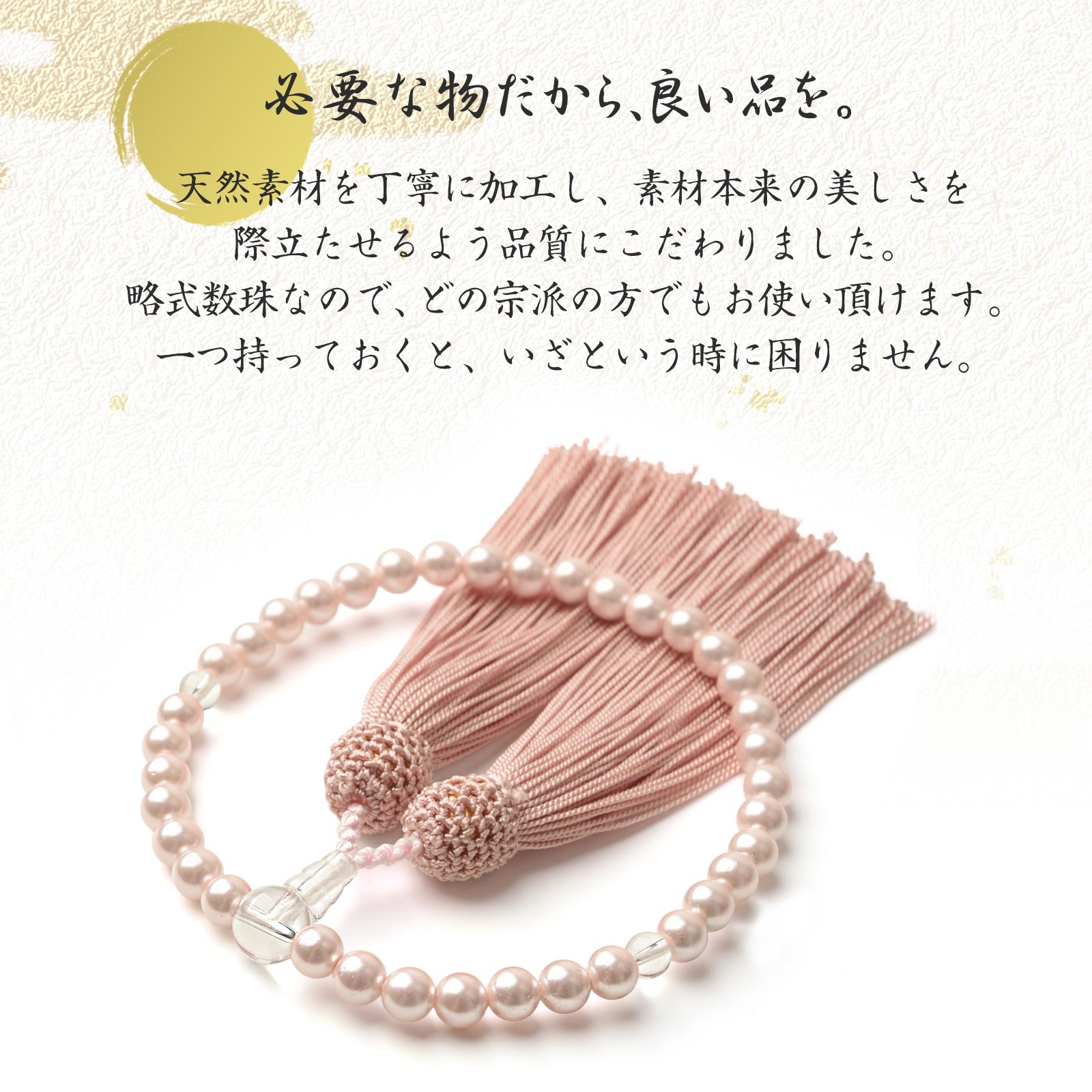 数珠 女性用 選べる 貝パール 本水晶 西陣織金襴数珠袋 付き 7mm パール 頭房 念珠 母の日 送料無料 juzu05 2407