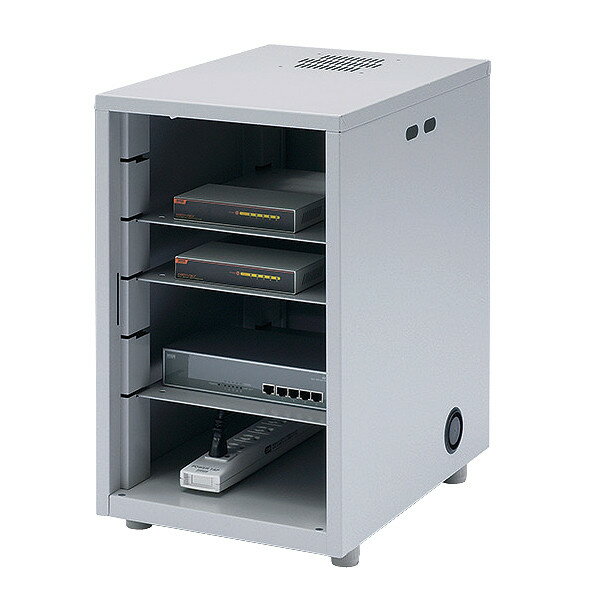 ハブやルータを縦置きに設置し、スペースを有効活用できる。●デスク下やオフィスの隅などに設置できるので、空間を無駄なく使えます。●前扉にメッシュパネルを採用し、通気性をアップさせています。参考画像●NAS、HDD、ルーター、LANハブなどの小型機器の収納に最適です。●棚板は3枚付属し、機器に合わせて位置を変更することができます。●最下段スペースにはタップを収納でき、配線をしやすくしています。●扉と背面パネルには鍵を装備し、セキュリティ、いたずら防止に最適です。●扉の向きは右開き、左開き両方の設定ができます。●天井面にはファン取付けが可能です。(1台)●背面にケーブル口があります。●本体底面にはアジャスターが付いています。※こちら商品は、ヤマト便、佐川便以外での発送となります。お届け先は法人様のみになります。個人様宅へのお届けはできません。日曜日・祝日のご指定はいただけない商品となっております。また、時間指定もお受けすることができません。ご了承の上、ご注文いただけますようお願いいたします。■サイズ:W300×D420×H508mm■重量:12.4kg■材質:スチール/メラミン焼付塗装■付属品:棚板3枚、鍵×2個(1種類)■棚板耐荷重:5kg■梱包:1個口/420×550×550、重量14.5kg■出荷形態:組立出荷【ご注意】取り寄せ商品のため、ご注文後のキャンセル・ご返品はお受けできません。あらかじめご了承の上、ご注文いただくようお願いいたします。<関連キーワード>CP-KBOX1 サンワサプライ 4969887124932 機器収納ボックス 幅30cm 高さ50.8cm NAS HDD ネットワーク機器収納ボックス タワー型 サーバーラック 小型 省スペースサイズちがいW300×D420×H508mmW450×D420×H508mmW300×D420×H700mm