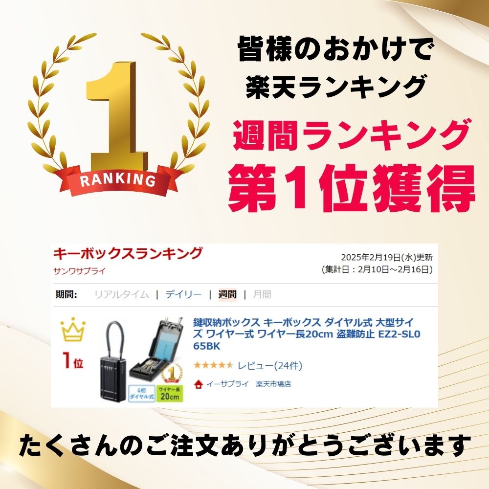 鍵収納ボックス キーボックス ダイヤル式 大型サイズ ワイヤー式 ワイヤー長20cm 盗難防止 EZ2-SL065BK