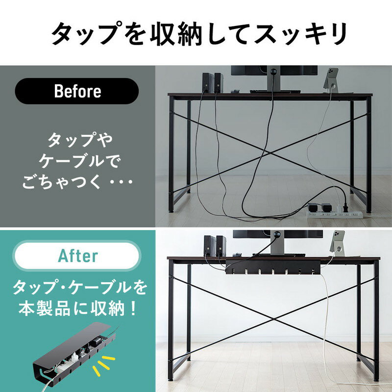天天板裏に取り付けて、電源タップとケーブルを一緒に収納できるケーブルトレーです。シンプルな見た目でごちゃつくケーブルの配線を目隠しできます。2個セット。<特長>●電源タップとケーブルを一緒に収納できるケーブルトレーです。●天板裏にネジで取り付けるタイプです。●好みに合わせて取り付ける向きを選べます。●シンプルな見た目のトレーです。●隣接して取り付けることも可能です。<仕様>■製品サイズ(外寸):W530×D110×H82mm■製品重量:1.08kg■製品カラー:ブラック■総耐荷重:5kg■製品パッケージサイズ:W550×D135×H100mm■製品パッケージ重量(製品含む):2.46kg■材質:スチール■付属品:ネジ 各4個(内予備 各2個)■取扱説明書:あり(日本語)■生産国:台湾■保証期間:初期不良のみ・小口輸入品につき、運搬の際製品、箱などに汚れ、キズができる場合がございます。<関連キーワード>ケーブルトレー,ケーブルオーガナイザ,配線,収納,隠し,デスク,電源タップ,幅53cm,ブラック