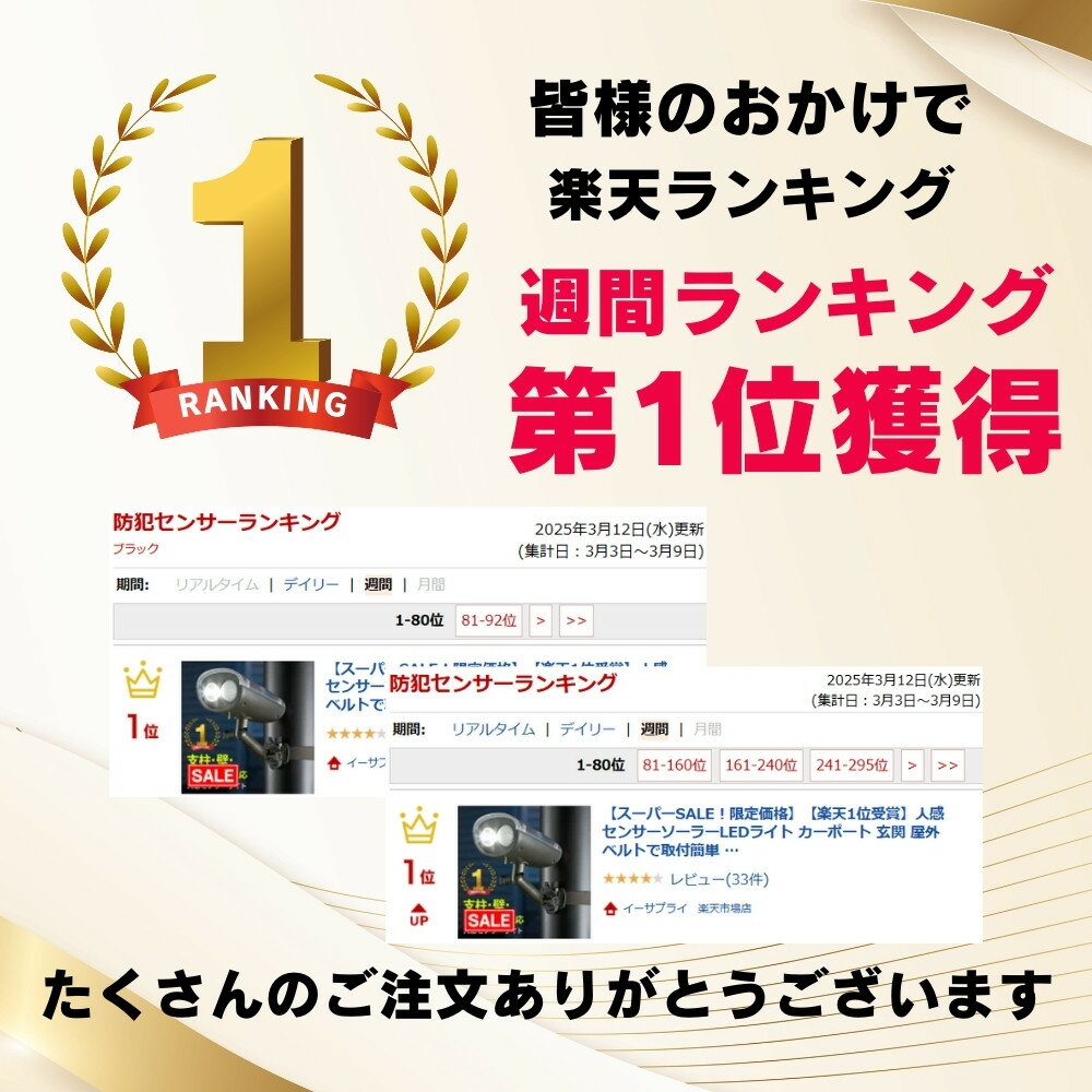 【最大2000円OFFクーポン配布中】【楽天1位受賞】人感センサーソーラーLEDライト カーポート 玄関 屋外 ベルトで取付簡単 防犯 明るい自動点灯 防水 EEX-LEDSR02