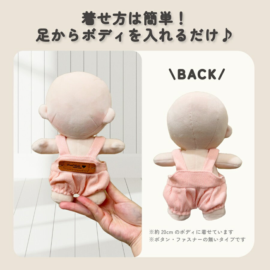 【期間限定クーポンあり】 ぬい服 大きめ サロペット 20cm オーバーオール ベージュ ホワイト ピンク 大きい ぬいぐるみ コスチューム 着せ替え 洋服 服 ぬい キャラクター 持ち運び 推し活グッズ グッズ 雑貨 専門店 おしゃれ 可愛い エタモ