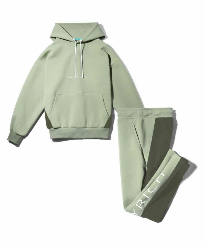 ARMYRICH アーミーリッチ ナイロン切替ボンディングオーバーサイズパーカーセットアップ L.KHAKI (ライトカーキ) スウェット トレーニングウエア ルームウエア ジム スポーツ ゴルフ ストレッチ素材 大人カジュアル プルオーバー ストリート系 オーバーサイズ