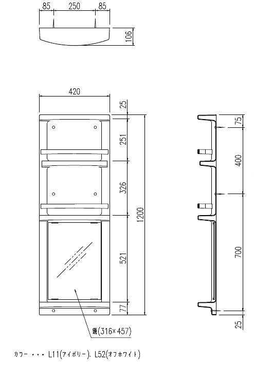 企業様限定商品 浴室収納棚 鏡付(平付) YR-412G/L52